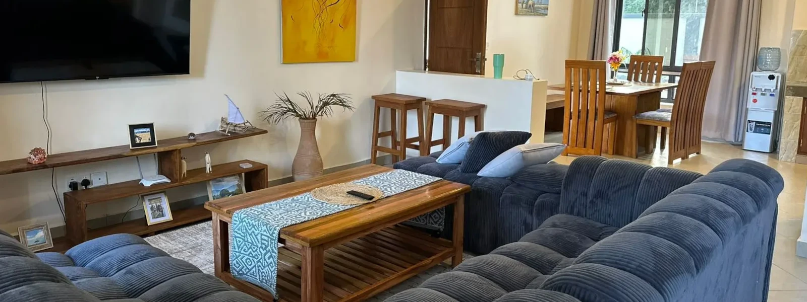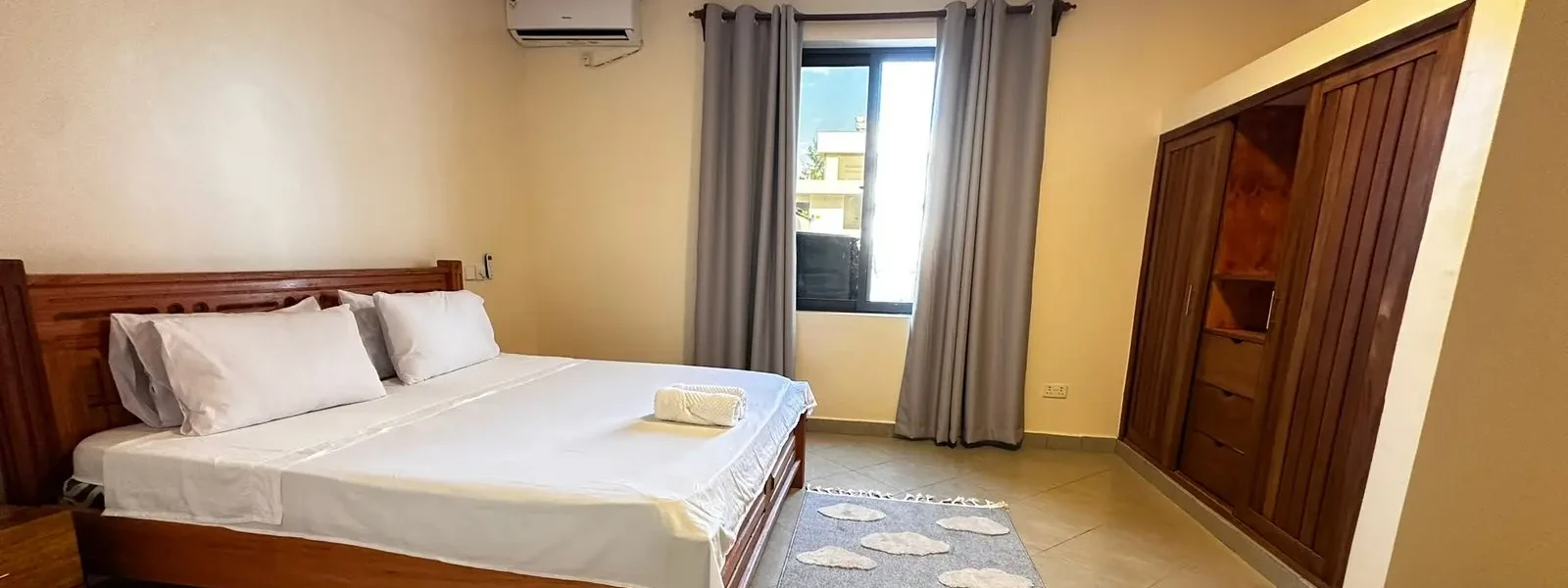 Located on the Kenyan Coast where the Kongo River meets the Indian Ocean. Get Accomodated in an environment that is only a fifteen minute walk to the crystal clear blue waters and white sand beaches of Diani. Relax by the spacious pool or head out to one of the local art markets for shopping. Make sure to experience the vibrant coastal night life and delicious swahili cuisine.